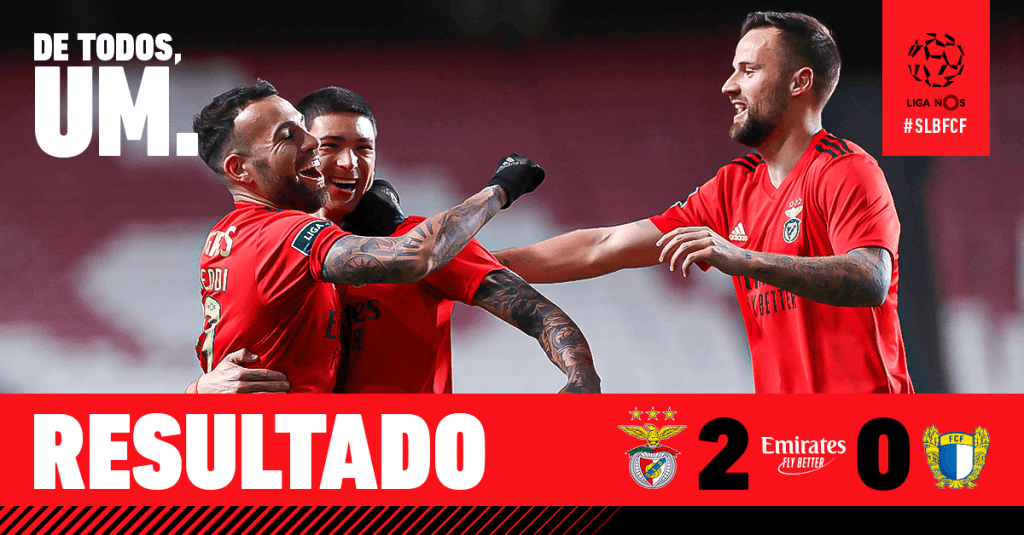 Depois de 4 jogos sem ganharno campeonato, Benfica vence por 2×0 com gols nos primeiros 10 minutos da partida.