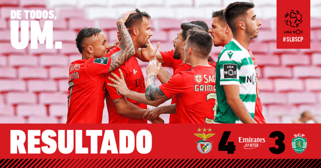 Mas o Sporting não são os Leões à toa. Batalharam e foram atrás do resultado, afinal queriam ser campeões invictos. Nuno Santos completando passe de Paulinho e Pedro Gonçalves, de grande penalidade, descontaram para o 4 a 3. Apesar do esforço, ficou por isto mesmo. O Benfica venceu o clássico lisboeta.