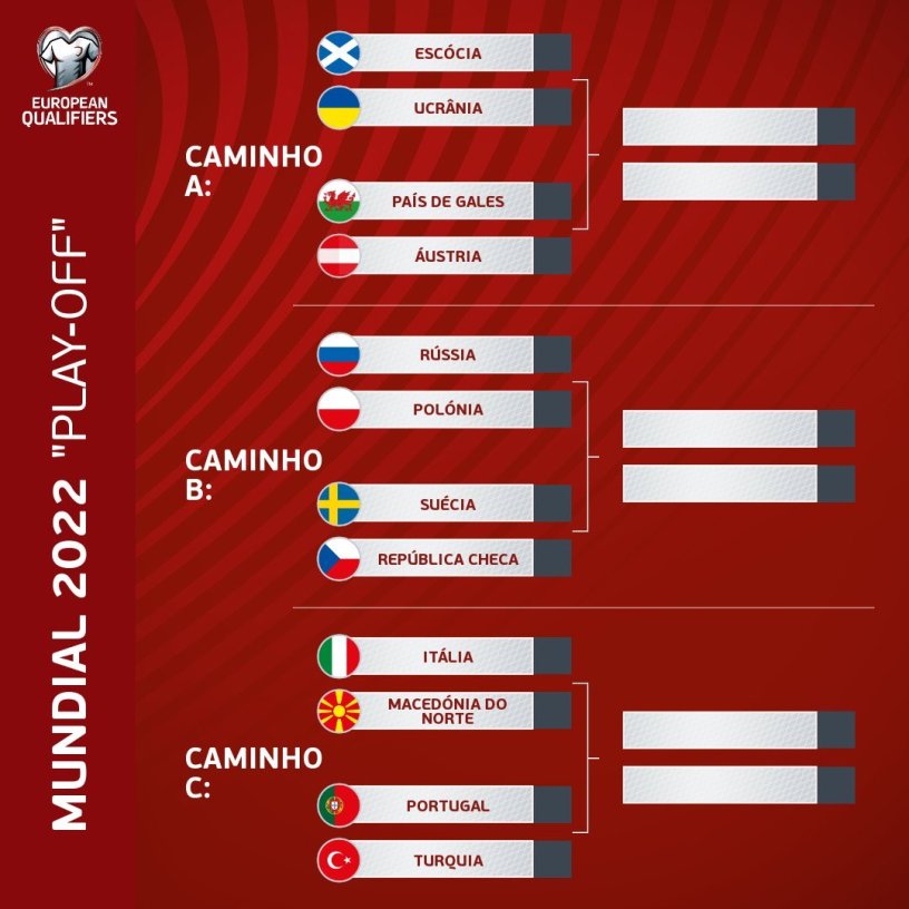 Já do lado da Ucrânia, a FIFA adiou a partida diante da Escócia para junho. Com isso, a última vaga europeia na Copa será definida somente no segundo semestre do ano.