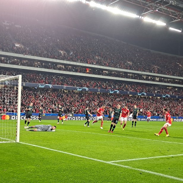 O torcedor encarnado comemorou mais 3 gols nesta noite de Champions. Isso porque no outro jogo do grupo E, o Bayern venceu o Barcelona por 3 a 0 e ajudou na classificação encarnada. Os gols bávaros foram marcados por Müller, Sané e Musiala.