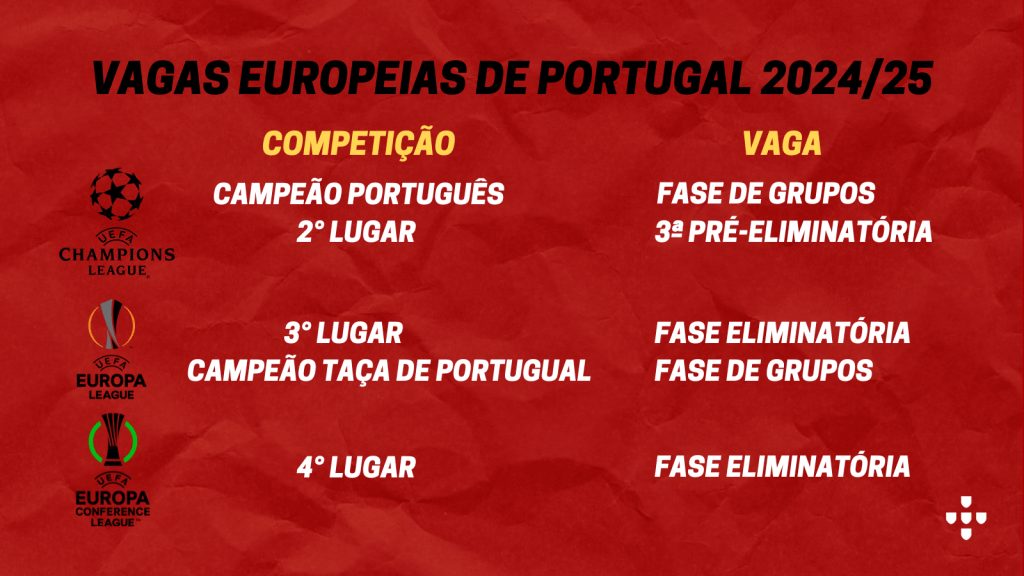 *Vale destacar que as vagas são distribuídas de acordo com a hierarquia das competições. Ou seja, caso o vencedor da Taça de Portugal já esteja classificado para a competição via campeonato, a vaga será destinada para o time abaixo na tabela.